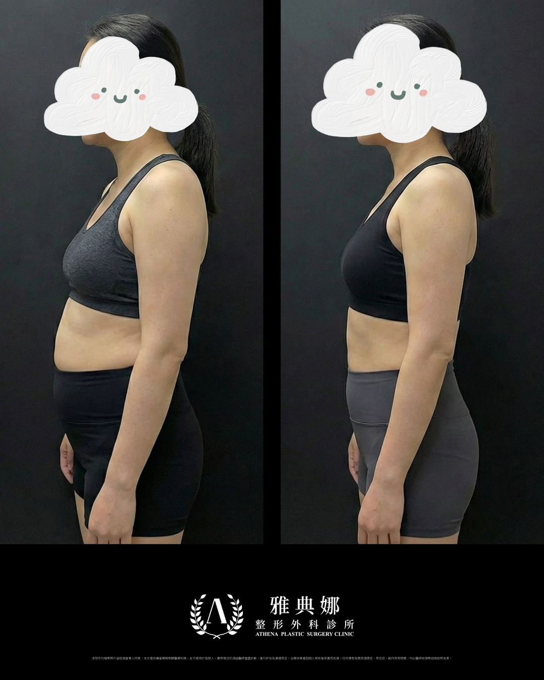 而Amber的情況屬於皮下脂肪較多的類型,因此非常適合使用 #威塑 抽脂來調整脂肪堆積的狀況,同時搭配 #超能電漿 來把已經撐開二十幾年的肚皮收緊。