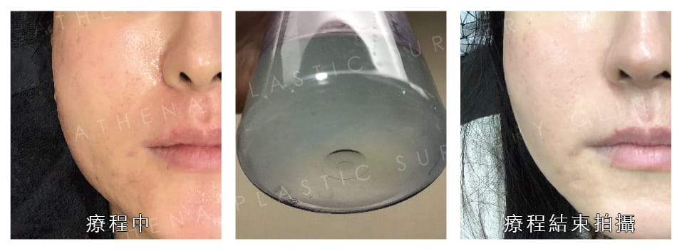 下圖為1次療程,帶走油漬、粉刺,達到乾淨透亮的效果。