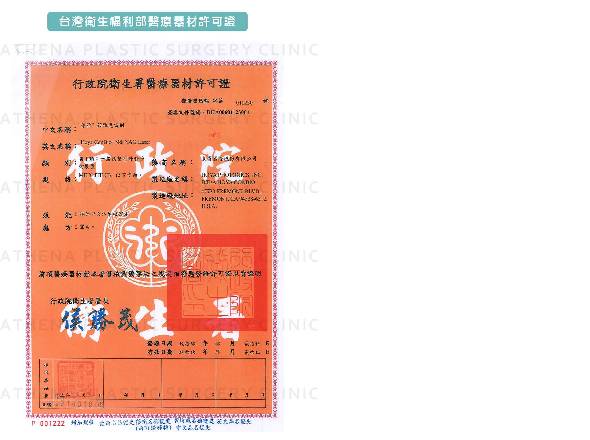 “豪雅”釹雅克雷射 衛部醫器輸字第011230號