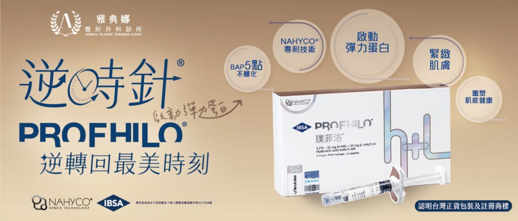 PROFHILO逆時針是一種可注射的全新產品,以NAHYCO®專利技術製成,可以活化細胞生產彈力蛋白機制,效果穩定自然。 與市面各種皮膚植入劑不同,Profhilo易於流動,能均勻分佈於肌膚,不會導致局部注射引起的不自然腫脹感,使肌膚更彈性緊實,更自然。