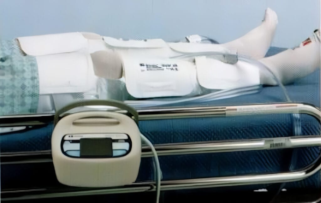 梯度壓力襪和氣體加壓幫浦會對腿部施予適當壓力,使腿部靜脈周徑縮小,因此促進靜脈回流,減少血液淤積及進一步的靜脈獷張,因此降低了血栓生成的風險。