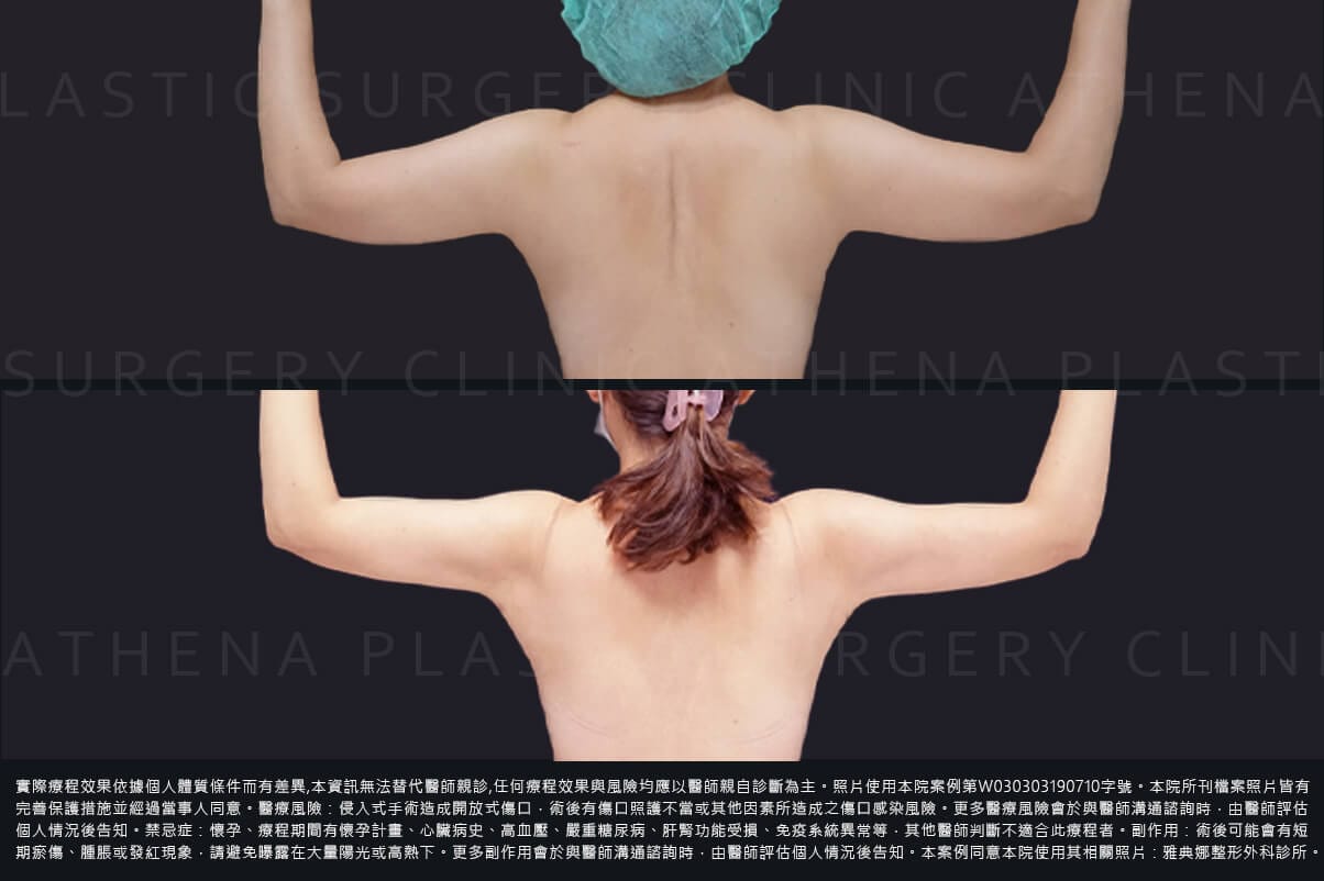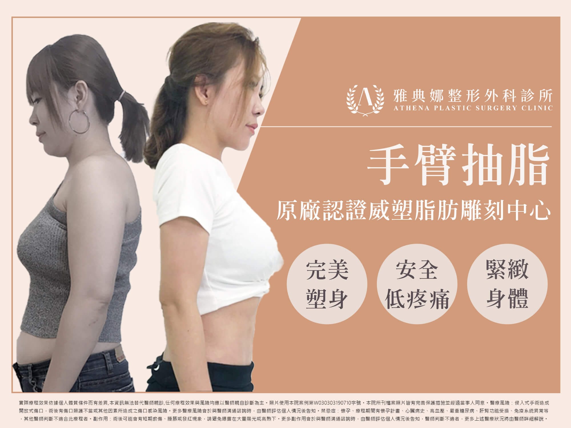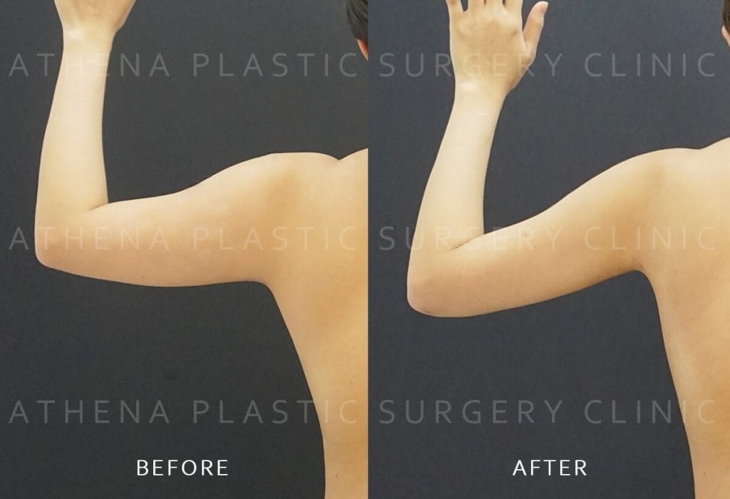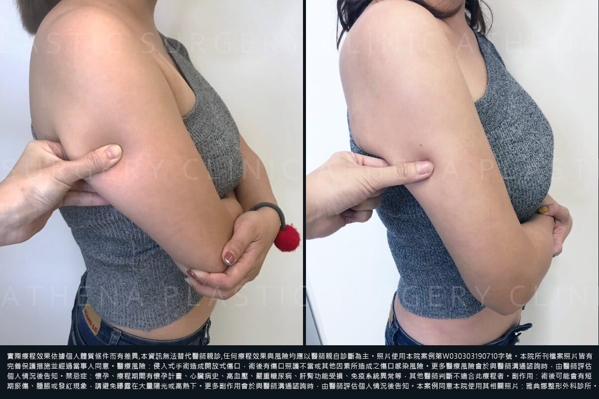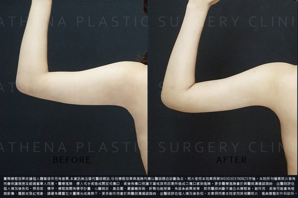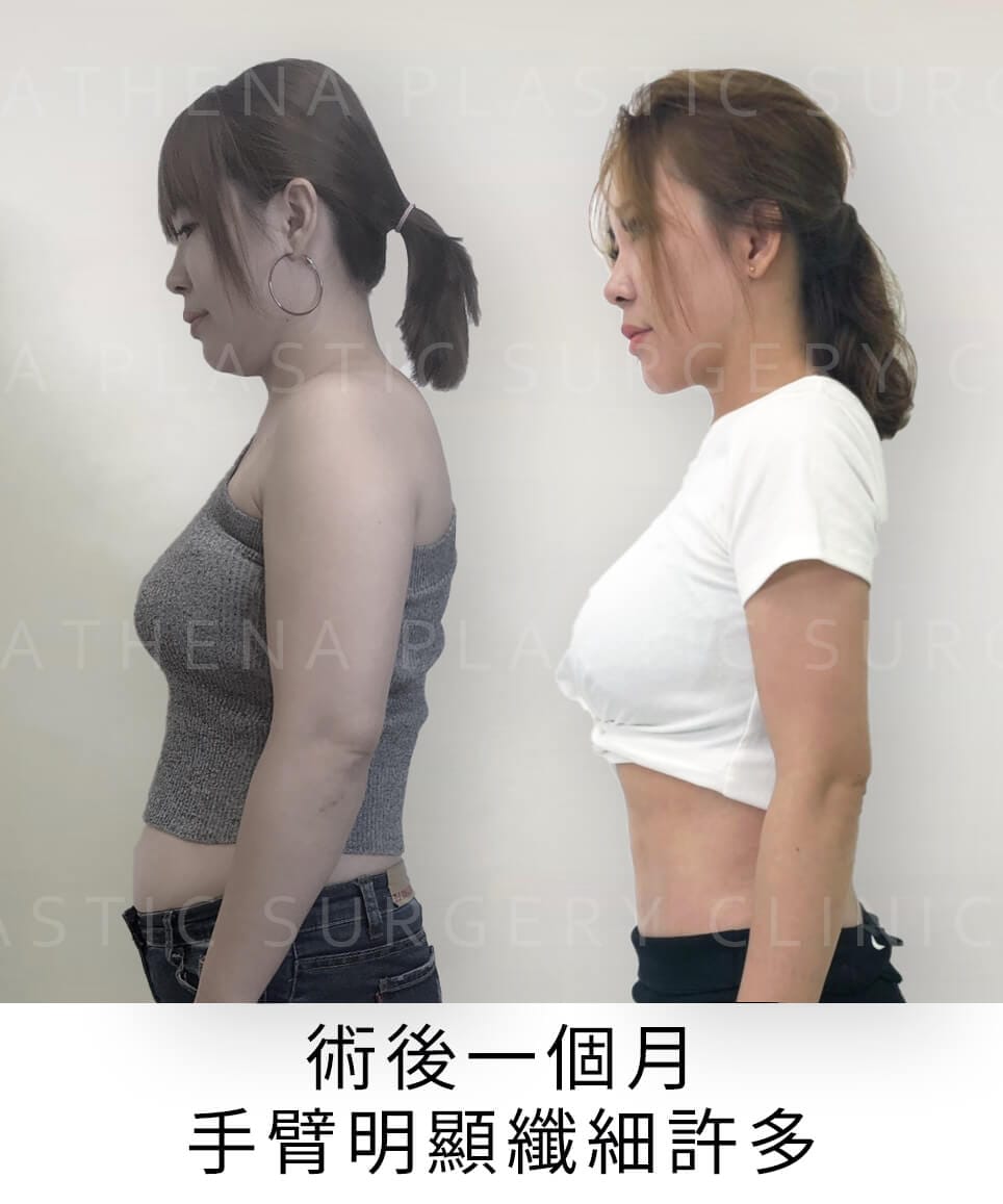 则是将皮下深层脂肪抽出,使局部脂肪层变薄,塑造出纤细手臂,让您夏天不再害怕穿无袖了!